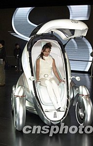 日本汽車龍頭企業豐田公司在東京國際汽車展上推出專門為2005年日本愛知世博會設計的新概念車,這種一人單乘的新概念車車身角度可自由升降,構成不同的精美造型。中新社記者:王健