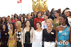 參加“第53屆世界小姐”選美大賽的110個國家和地區的佳麗,十一月九日在香港金紫荊廣場參加活動,圖為“第52屆世界小姐”冠軍阿金與眾佳麗一起出席活動。中新社記者:錢興強
