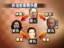 此外,臺北“地院”審理新瑞都案時,李登輝及新瑞都大股東蘇惠珍是以證人身份出庭,前國民黨投管會主委劉泰英及劉泰英白手套李明哲是以被告身份出庭。
