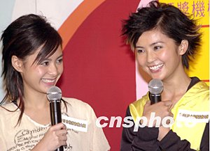 人氣組合Twins兩位成員鐘欣桐(阿嬌)、蔡卓妍(阿Sa)11月12日在香港出席《2003四臺(tái)聯(lián)頒音樂(lè)大獎(jiǎng)》記者會(huì),兩人坦稱今年最希望獲得“四臺(tái)聯(lián)頒音樂(lè)大獎(jiǎng)---歌曲獎(jiǎng)”。中新社記者:鄧慶樂(lè)
