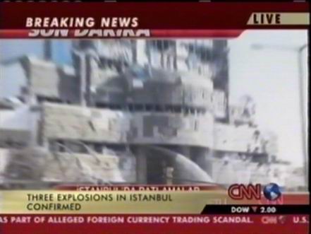 北京時間11月20日下午,位于土耳其伊斯坦布爾北部的土耳其匯豐銀行總部附近發生兩次爆炸,部分銀行建筑被摧毀。此后英國駐伊斯坦布爾領事館以及一個居民區和一座清真寺也遭到襲擊。圖為爆炸中被損毀的匯豐銀行。(春風)