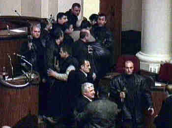 圖:格魯吉亞總統(tǒng)謝瓦爾德納澤倉(cāng)促離開(kāi)國(guó)會(huì)大廈