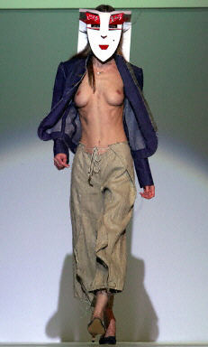 圖:中國國際時裝周上提醒預防SARS的時裝
