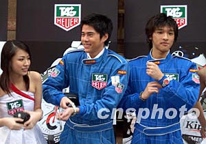 香港流行音樂組合Shine,三日在時代廣場出席一品牌腕表記者會時,獲大會贈送最新款運動型腕表。中新社記者:譚達明