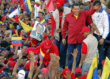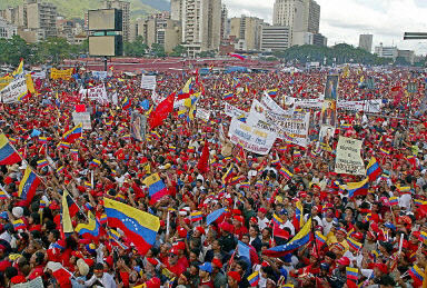 委內(nèi)瑞拉數(shù)十萬擁護查韋斯的民眾6日在首都加拉加斯舉行大規(guī)模游行,慶祝查韋斯選舉獲勝5周年。