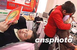 第九屆中國國際美發(fā)美容節(jié)之美發(fā)美容用品博覽會十二月十日在北京開幕,眾多男士也光臨展會親身體驗,如今美容已不再是女性的專利。中新社記者:張宇
