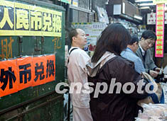 里昂證券預(yù)測(cè),明年內(nèi)地訪港旅客最少達(dá)一千二百萬(wàn)人次,總消費(fèi)額將達(dá)五百九十億港元,較今年高出至少二百億港元,相信有利創(chuàng)造香港本地的就業(yè)機(jī)會(huì)。圖為時(shí)下香港鬧市區(qū)人民幣兌換業(yè)務(wù)繁忙,已顯內(nèi)地游客訪港臨近高峰。作者:潘索菲