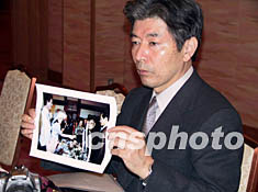 日本業余攝影師松田定明向中國記者展示二十五年前拍攝的鄧小平出人意料出席日本新人婚禮的獲獎圖片《友好的瞬間》。該圖片獲得一九七八年《讀賣新聞》年度大獎。作者:劉莉生