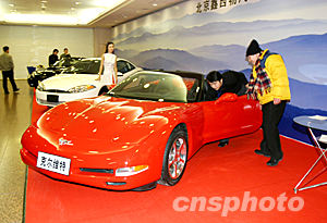 2003年12月25日,“北京新年、新款、新價格汽車展覽會”上,平時難得一見的世界級頂級名車紛紛亮相,如蓮花、野馬、雪佛蘭克爾維特等,讓車迷大飽眼福。魯谷 攝