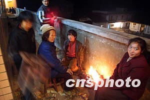 圖:重慶井噴事故的災(zāi)民烤火取暖