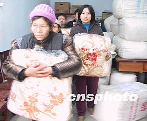 多圖:重慶井噴事故轉移民眾領取救災物資