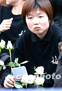 香港著名藝人梅艷芳喪禮于元月十一日設靈公祭, 歌迷手持白花致祭梅艷芳。中新社記者:錢興強