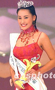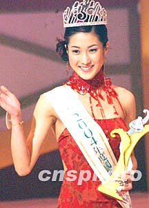 應(yīng)屆港姐曹敏莉一月十七日晚在香港舉行的2004年度國際華裔小姐競選決賽上獲得亞軍。作者:錢興強(qiáng)