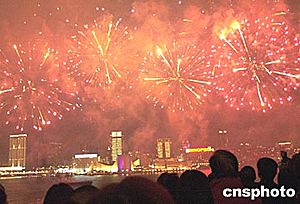 除煙花匯演外,香港新界工商業總會還在會展中心舉行新春酒會,行政長官董建華、中央政府駐港聯絡辦副主任周俊明、外交部駐港特派員楊文昌等出席今晚的活動。