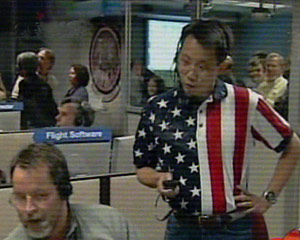 美國國家宇航局噴氣推進實驗室的火星著陸系統總工程師、華裔科學家李煒鈞(Wayne Lee,站立者)與同事緊張指揮調度。