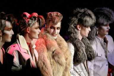 在法國時裝周,模特展示英國時裝設計師John Galliano設計的2004/2005秋冬流行男裝。
