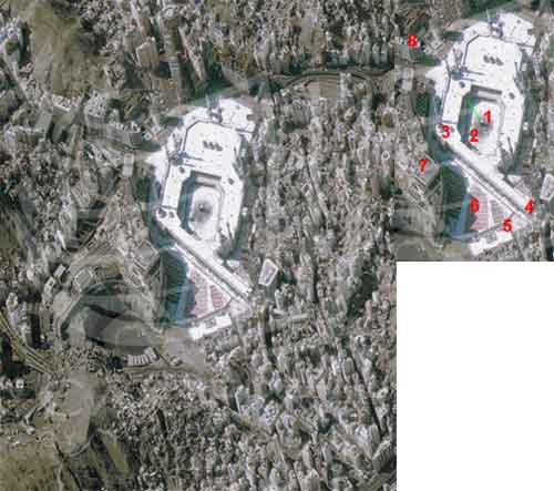 圖注1:麥加城衛星圖一,圖示為: