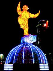 中新網2月2日電 2004年臺灣燈會的中心主燈昨(1)日進行測試,高達22.5米的“科技獼猴”在臺北縣的夜空中散發出充滿生命力的律動光芒,讓人驚艷,也吸引許多民眾搶先觀賞。燈會將于2月5日至15日正式登場,開燈后每半小時將展演一次主燈聲光秀。
