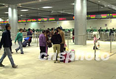 澳門新關閘邊檢大樓二日開始啟用,寬敞明亮的大廳和多達七十一條的進出通道,使通關能力大大提高。據澳門海關有關人員統計,二日進出關人數達六萬六千人次,但新關閘進出大廳均比原來老關閘通關能力有明顯的提高和順暢。圖為通暢的新邊檢大樓入境大廳。中新社記者:李剛