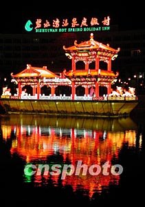 一元復始,大地回春,流溪兩岸彩燈萬盞賀元宵。在廣州從化碧水灣溫泉度假村舉行的大型“彩燈廟會”,匯集了“天下第一彩燈--自貢”之精華,精心制作大型水上彩燈。作者:鄧嘉樂