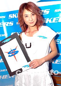 歌星鄭希怡(Yumiko)2月11日在香港出席美國年青時尚便服鞋Skechers記者會,鄭希怡成為Skechers 2004年最新香港區代言人,該品牌并為她設計了"Skechers×Yumiko"圖案,將生產限量版波鞋發售。作者:鄧慶樂