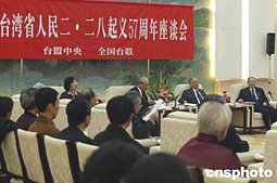 座談會由全國臺聯會長楊國慶主持。“二二八事件”參加者周青,中國社會科學院近代史研究所所長張海鵬,全國臺聯研究室副主任楊毅周等分別在會上發言。他們高度評價臺灣人民的愛國民主運動,表示要繼續堅定不移地堅持一個中國原則,堅決反對任何形式的“臺獨”分裂活動。