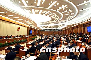 十屆全國人大常委會(huì)第七次會(huì)議二月二十九日在北京閉幕,會(huì)議表決通過了十屆人大二次會(huì)議議程草案、主席團(tuán)和秘書長名單草案等。中新社記者:鄭萍萍