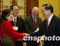 今天下午,唐家璇在人民大會堂會見了來京參加香港國泰航空公司復飛北京航線慶祝活動的香港各大商會及有關企業負責人。