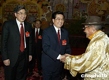 在認真聽取代表的發言后,胡錦濤首先表示完全贊成溫家寶總理代表國務院作的《政府工作報告》。
