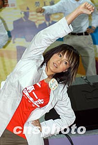 歌星何韻詩3月6日在香港出席由職安局及勞工處舉辦之《職安健康日2004》開幕典禮活動,「職安領隊」何韻詩帶領出席嘉賓及歌星進行健康操,宣揚職業安全信息。作者:鄧慶樂