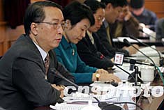 三月十八日,中國教育部在北京舉辦新聞發布會,會上通報了中國來華留學工作的有關情況。2003年中國共接受來自一百七十五個國家的各類來華留學人員7.8萬人次。圖為教育部副部長章新勝(左一)在新聞發布會回答記者的提問。中新社記者:張勤