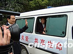 三月十八日,十支總數(shù)為三十人的湖北防治艾滋病專家隊(duì),分赴該省二十一個地區(qū)開展為期一年的巡回醫(yī)療。圖為湖北官員向?qū)<业绖e。作者:艾啟平