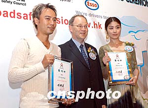 歌星陳慧琳、李克勤3月18日在香港出席《道路安全愿景暨標志創作比賽》記者會,陳慧琳、李克勤獲委任為「道路安全愿景大使」,將協助推廣道路安全信息,運輸署署長霍文向兩位頒發委任狀。作者:鄧慶樂