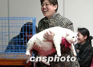 2004年3月21日是世界名貓盛會亮相上海最后一天,當天舉行了許多單體項目的比賽,近120多只來自中國各地的名貓角逐“中國貓王”,最終新一屆的“貓王”頭銜被一只金吉拉摘走。中新社傳真 楊磊攝