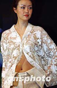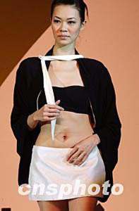 “2004香港國際春季時裝材料展”三月二十三日在香港會展中心開幕,參展設計師在展會上推出選用不同面料設計的時裝,簡潔、典雅。中新社傳真 錢興強 攝