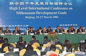 這次會議由中國政府與聯合國系統駐華機構聯合舉辦。來自聯合國、政府、國際組織、私營企業、學術機構、非政府組織等方面的代表,就貧困、發展與平等、健康衛生、可持續性以及地區和全球合作等議題展開廣泛探討。聯合國駐華機構在今天上午的會議上發布了《千年發展目標中國實施情況報告》。