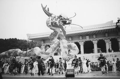 伴著合唱的變奏,“云門大卷”、“百獸率舞”、“中華鼓魂”聚集在大殿前,1000只鴿子飛向藍天,一條象征黃帝精神的60米長的巨龍從大殿內“飄逸”而出,在舞臺上空盤旋翻飛,隨后,黃帝“馭龍飛天”而去……(本報陜西黃陵3月29日專電)