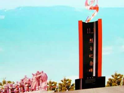 根據(jù)目前的設(shè)計方案,烈士紀(jì)念廣場選址衡陽烈士陵園。烈士紀(jì)念碑位于紀(jì)念廣場的東南面,是該廣場的標(biāo)志性建筑。紀(jì)念碑高11.3米,長20米,中間是主碑,兩邊各是一組群雕。主碑由基座、碑座、主碑和鳳凰雕像組成,喻示20位烈士像鳳凰一樣在烈火中涅(般下加木)永生。主碑基座高1.19米,碑座周長11.3米,主碑直徑2.8米,是兩個缺圓,形似在“11·3”火災(zāi)中坍塌的8層大樓,碑座下面缺口處刻有烈士事跡簡介,主碑中間刻“11·3烈士紀(jì)念碑”。紀(jì)念碑的兩組群雕由中間向兩邊傾斜,藝術(shù)地再現(xiàn)消防官兵撲滅“11·3”大火的壯烈場景。