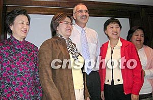 成功救回香港鳳凰衛視女主播劉海若一命的大陸名醫、北京宣武醫院神外科主任凌鋒(右二),目前在臺灣進行學術交流。四月十五日,她與劉海若(左二)、劉海若母親(左一)、劉海若姐姐(右一)、SOS中國中心主任查爾斯等相聚。作者:黃少華