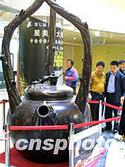 五月六日,一只高三點五米、重九百八十公斤的巨型紫砂壺亮相上海正大廣場,吸引了眾多市民駐足觀望。作者:湯彥俊