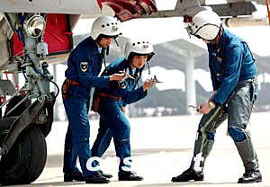 解放軍濟南空軍航空兵某團今春借裝備新飛機之機,組織各類人員進行業務訓練,并對戰法進行再度優化創新。圖為飛行員利用飛行間隙研究新戰法。作者:崔文斌