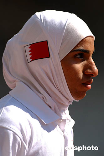 圖為巴林選手Rakia Al Gassra在女子100米比賽前觀看場地的畫面。