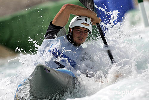 圖為法國選手在當地時間8月20日舉行的男子皮劃艇比賽時的精彩表現。