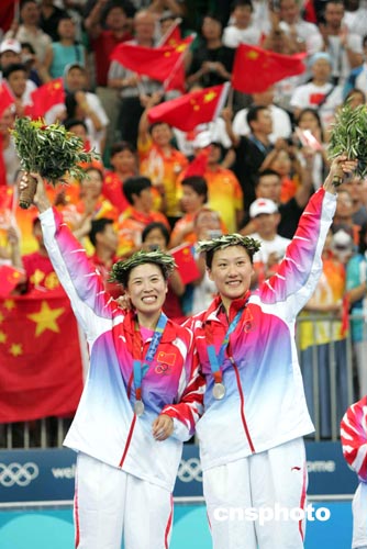 “黃穗抽筋了,我也該到修理廠大修了。”高崚笑著和混雙搭檔張軍說道,張軍讓她多喝點水休息一下,“我喝了,可是不管用,還是累啊!”高崚/黃穗今日下午在雅典奧運會羽球女雙決賽中一比二不敵隊友楊維/張潔雯獲得銀牌,體力嚴重透支是高崚/黃穗失利的主要原因之一。