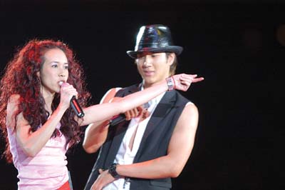 演唱會的高潮出現在嘉賓表演環節,雖然S.H.E作為嘉賓沒有到現場,而她們是通過一段錄像為王力宏加油,3個小女生在一起插科打諢,惹得全場一陣大笑。而昨晚演出中,最熱烈的掌聲和最大的尖叫聲都源自于莫文蔚的出場,而她演唱《陰天》時更是引得萬人大合唱,場面十分壯觀。(車慶久)