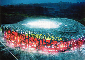 此時,作為2008年北京奧運會主會場的國家體育場,已在京北破土動工7個月,有1800多根長38.3米、直徑近1米的樁已被打入地下,按原來的計劃,到2006年底,這里將搭建出一個巨大的白色“鳥巢”。
