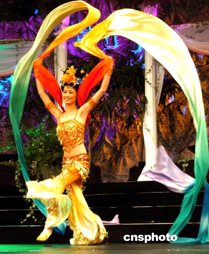 圖為陳法拉在決賽上表演彩綢舞。