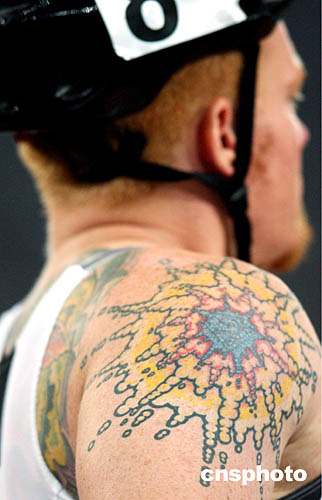 圖為加拿大選手Jeffrey Adams身上的個性文身特寫鏡頭。