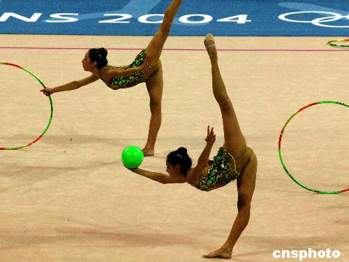巴西藝術體操隊八月二十四日在雅典進行賽前排練。中新社記者:王瑤