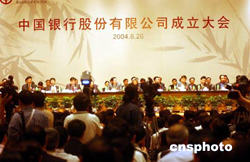 經(jīng)中國政府批準(zhǔn),中國銀行整體改建為中國銀行股份有限公司,并于二零零四年八月二十六日在北京成立,自成立之日起,將完整承繼中國銀行的資產(chǎn)、負債和所有業(yè)務(wù)。中新社記者:武仲林